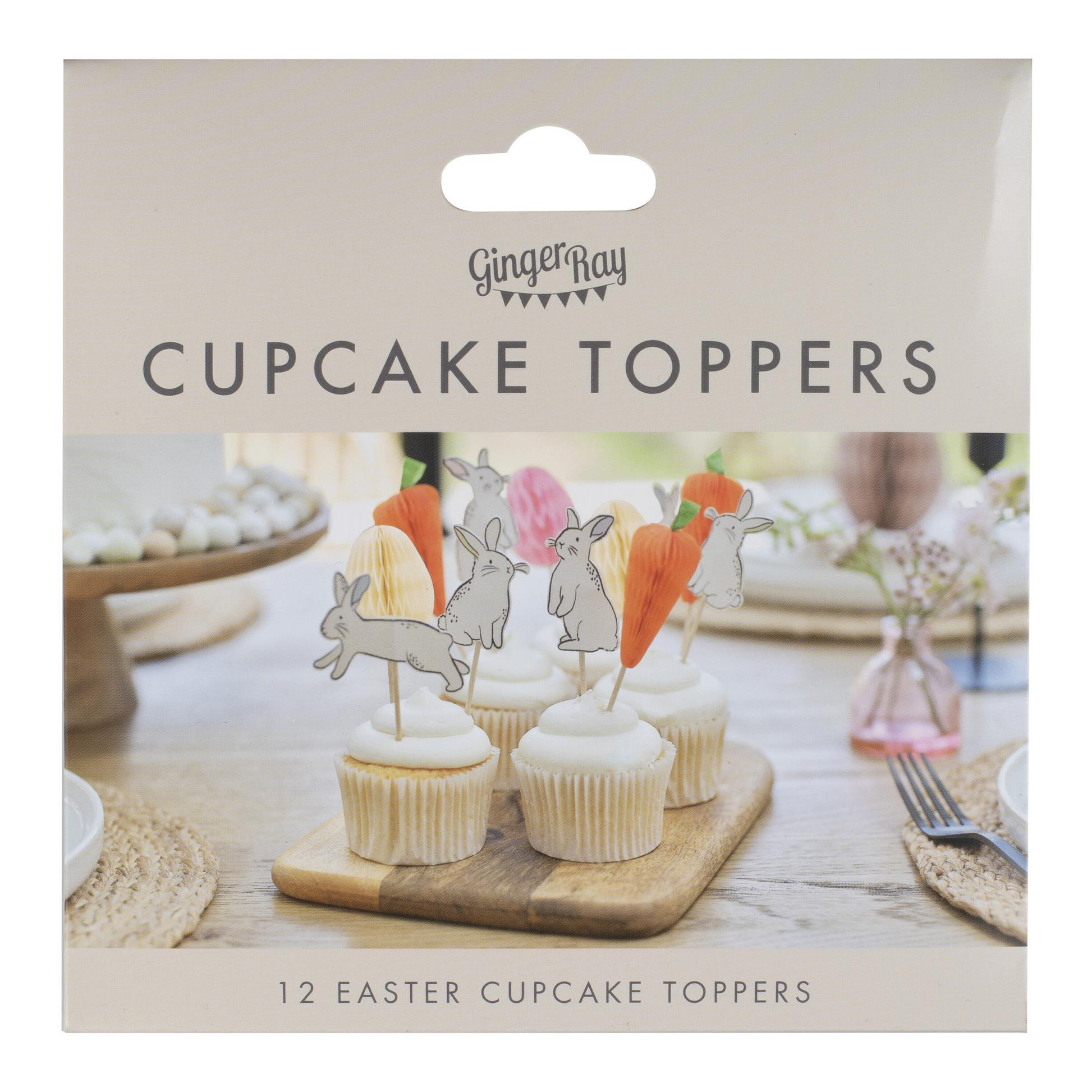 12 Toppers pentru Cupcakes / Tort de Paste - Iepuras, Morcov si Oua