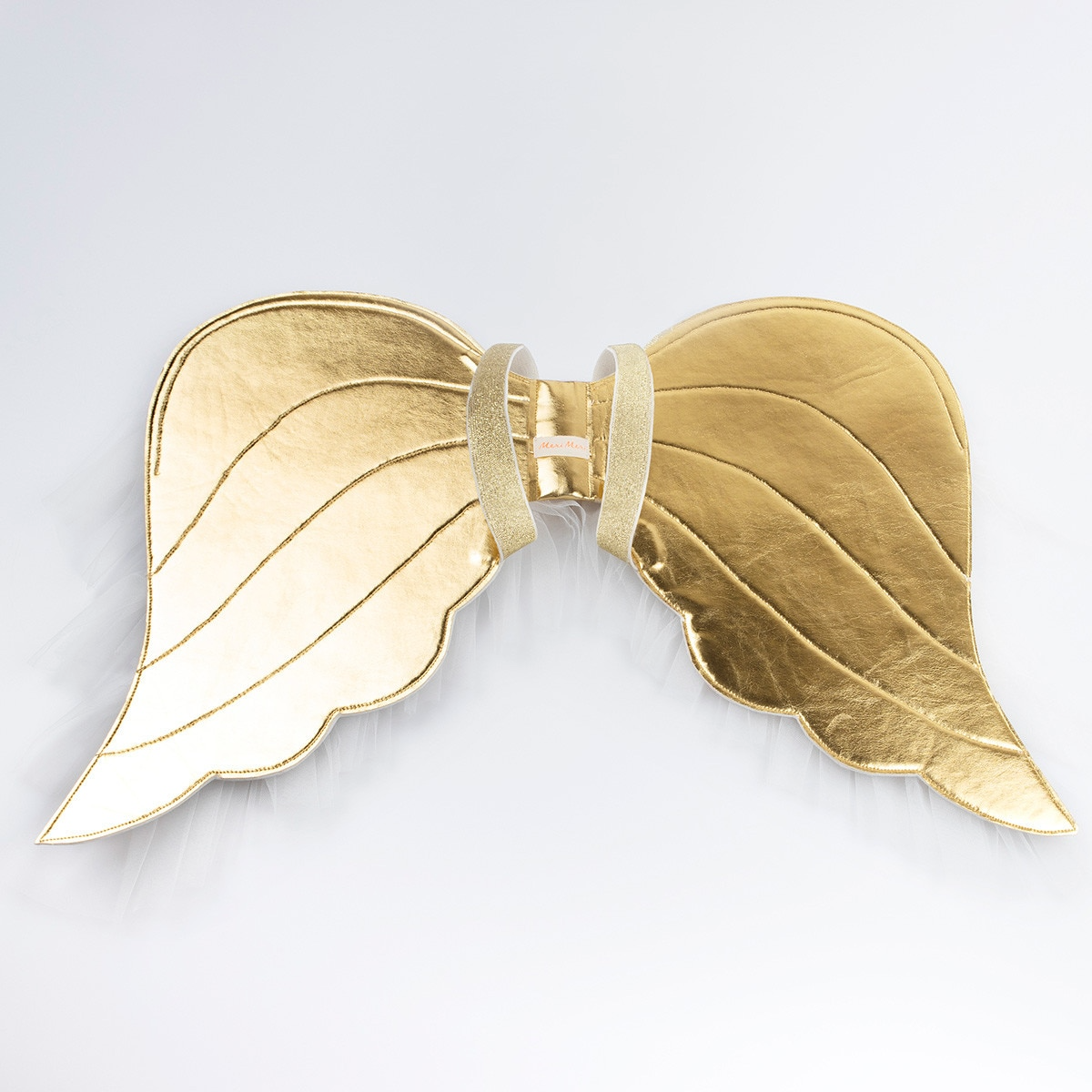Spatele aripilor este confecționat din piele ecologică aurie, cu cusături din fir auriu