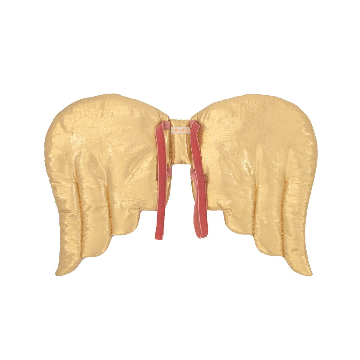 Aripile matlasate și umplute sunt confecționate din material lamé auriu sclipitor