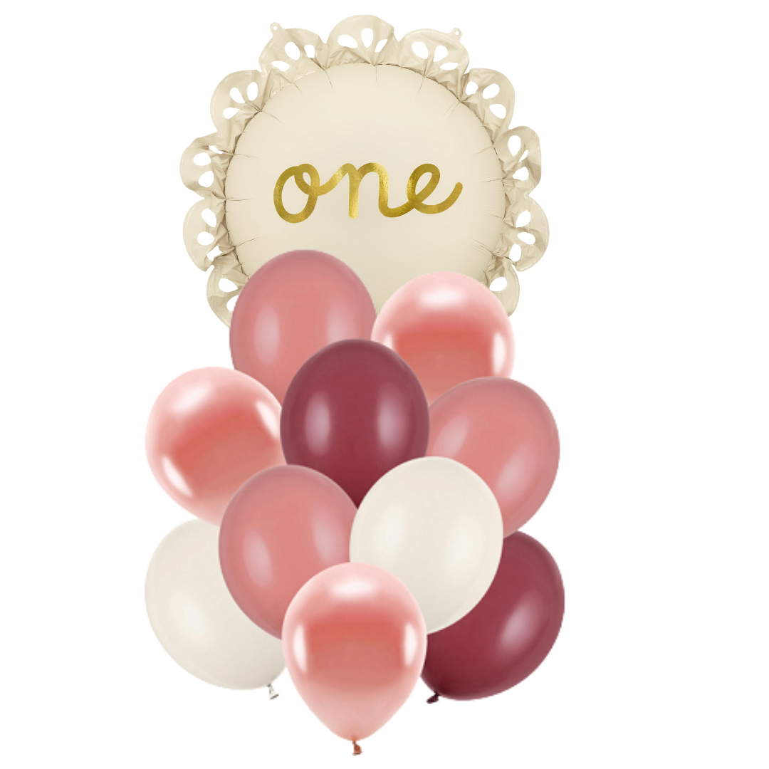 Baloane Cu Heliu Prima Aniversare Roz (11 buc)