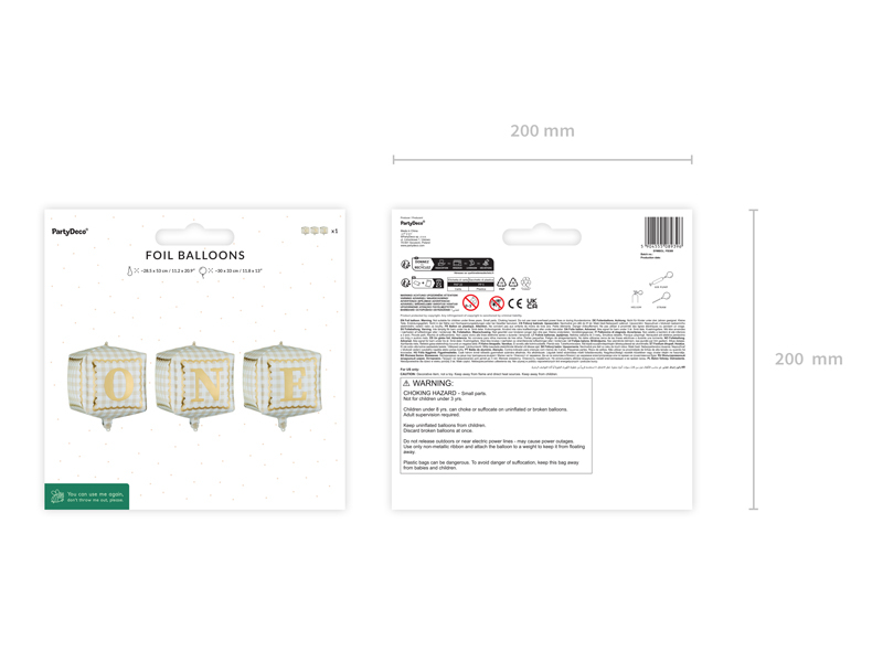 Set de baloane din folie în formă de cuburi „One”, în culori asortate. Dimensiune înainte de umflare: aprox. 28,5 x 53 cm (11,2 x 20,9”), dimensiune după umflare: aprox. 30 x 33 cm (11,8 x 13”). Potrivite pentru umflare cu aer sau heliu. Setul include 3 baloane și un pai pentru umflare.