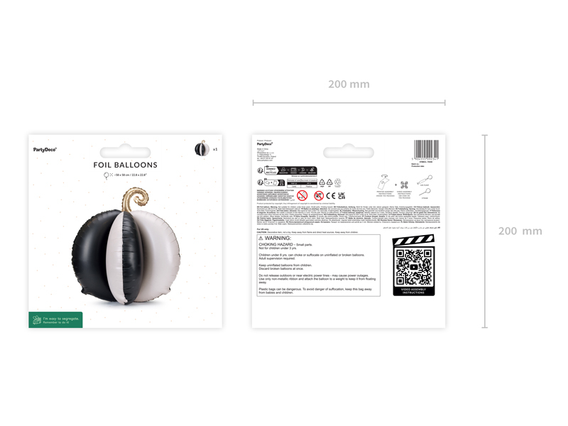 Balon decorativ din folie, in forma de dovleac 3D, in culori elegante de negru si crem, cu codita aurie. Ideal pentru decoruri de toamna, Halloween sau petreceri cu tematica rustica sau moderna.