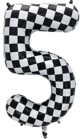 Balon din folie în formă de cifra 5 decorat cu un model în carouri alb-negru, este ideal pentru petreceri tematice, aniversări și evenimente inspirate de curse sau motorsport. Designul modern și contrastant îl face ușor de integrat în diverse decorațiuni cu baloane, adăugând un accent vizual puternic decorului.