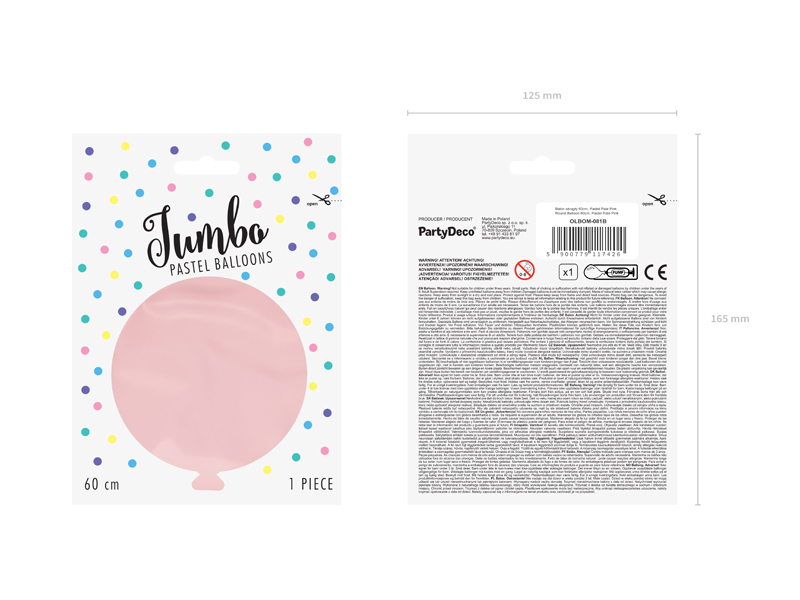 Balonul de 60 cm, roz deschis, umflat cu heliu, gata pentru ridicare din magazin.