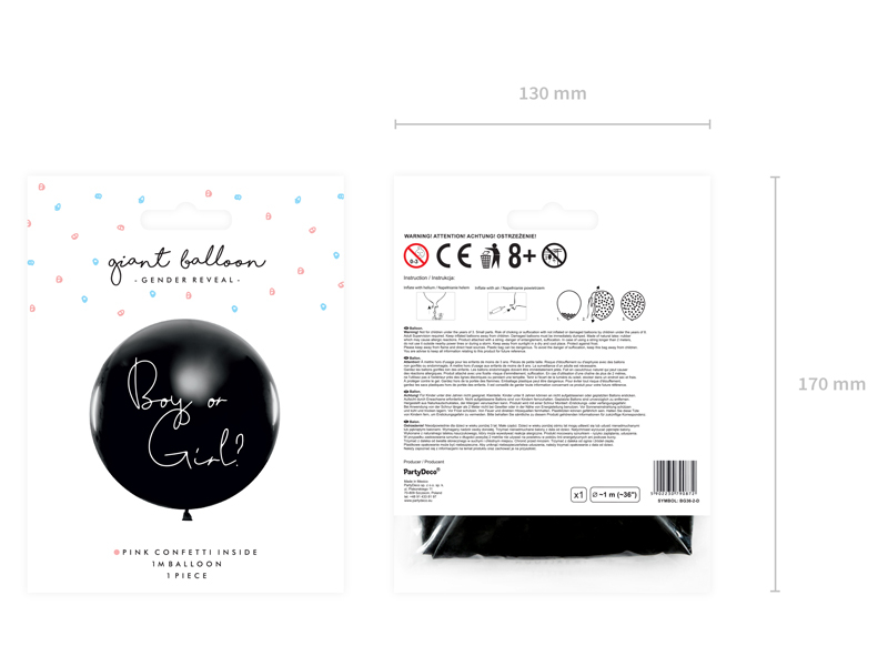 Balonul este preumplut cu confetti roz, iar la spargere creează un efect vizual impresionant, perfect pentru fotografii și filmări memorabile. Cu un diametru de aproximativ 1 metru (36”), este ideal pentru petreceri Gender Reveal, evenimente în familie sau ședințe foto.