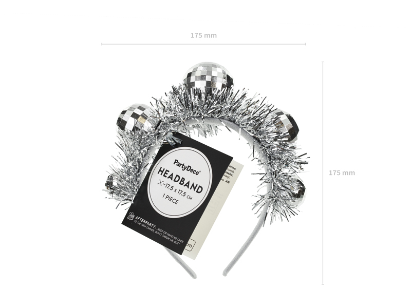Bentiță cu bile disco, 17.5x17.5 cm, argintie