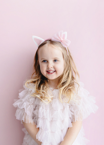 Bentiță urechi pisică cu fundiță roz 18.5 x 17 cm