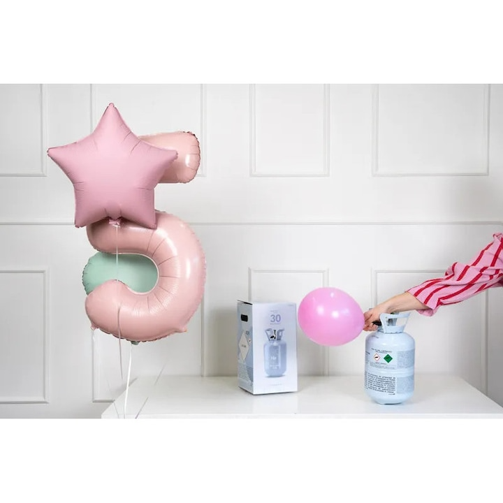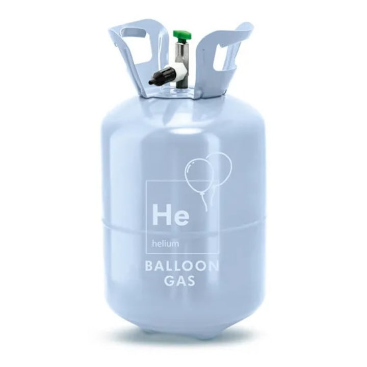 Cilindru de heliu pentru 30 de baloane, albastru cu imprimeu negru, capacitate aprox. 0,189 m³.