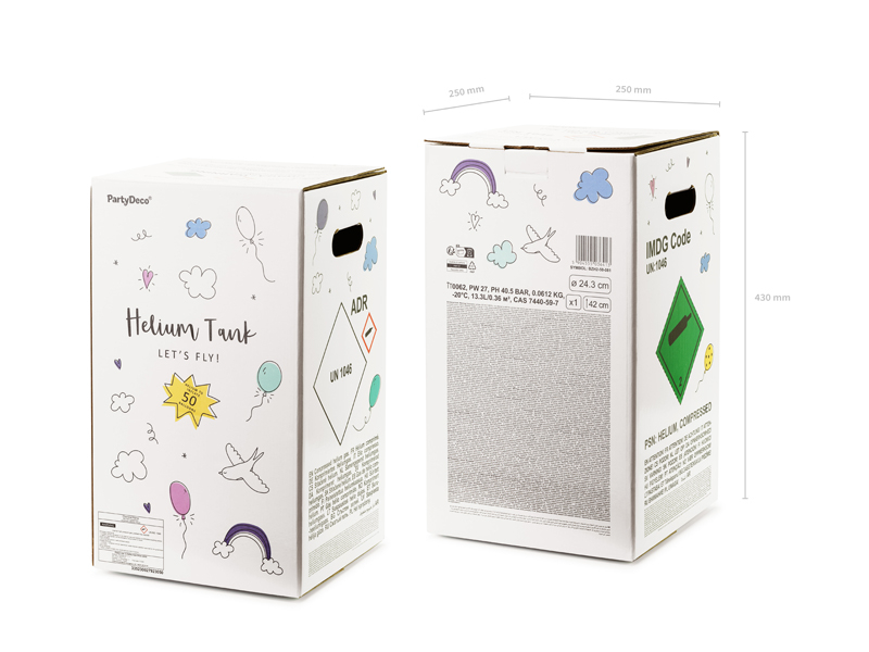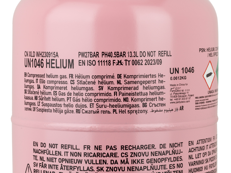 Cilindru de heliu pentru 50 de baloane , capacitate aprox. 0,189 m³.