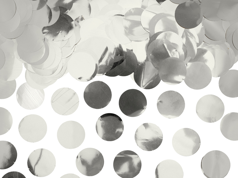 Confetti decorative sub formă de cercuri, realizate din folie de culoare argintie. Fiecare cerc are un diametru de aproximativ 2,5 cm. Pachetul conține aproximativ 15 g de produs, ideale pentru decorarea meselor, petreceri și evenimente speciale.