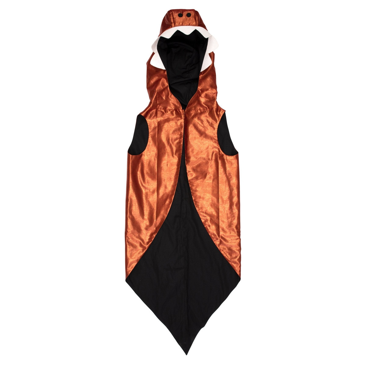 Este un cadou fantastic și o completare excelentă pentru orice cutie de costume. Jacheta cu glugă este confecționată din lamé roșu și cupru, cu detalii din fetru pe față și țepi cusuti pe spate. Perfect pentru multe momente de joacă zgomotoasă și amuzantă!
