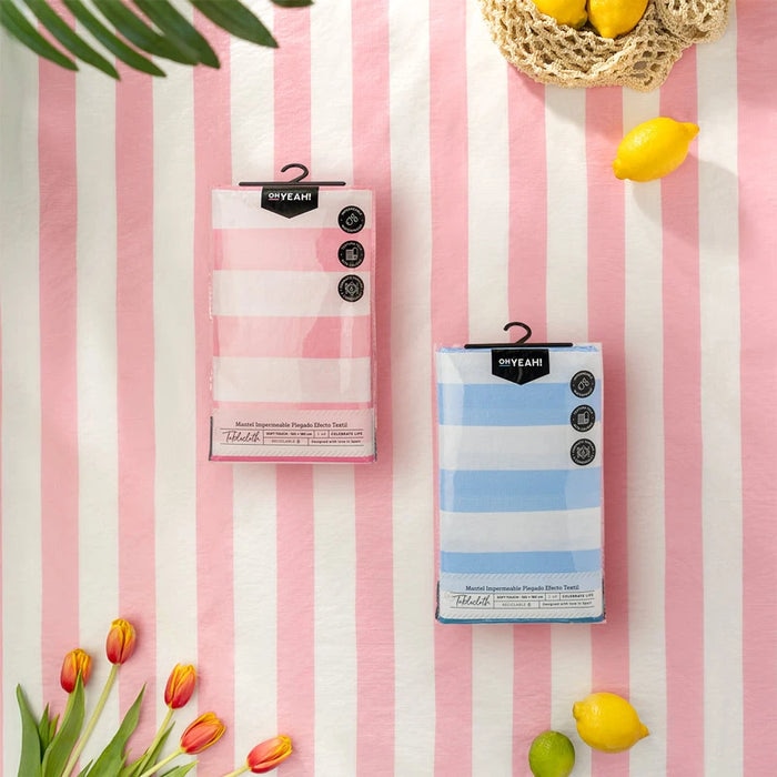 Fata de masa impermeabila 1.2x1.8m, dungi roz si alb