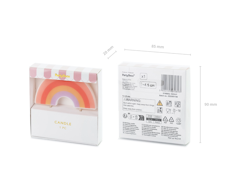 Adaugati o nota vesela si colorata tortului de aniversare cu aceasta lumanare in forma de curcubeu. Cu o inaltime de 4,5 cm, este perfecta pentru a aduce un strop de magie si bucurie oricarei petreceri. Ideala pentru toate varstele si ocaziile speciale.