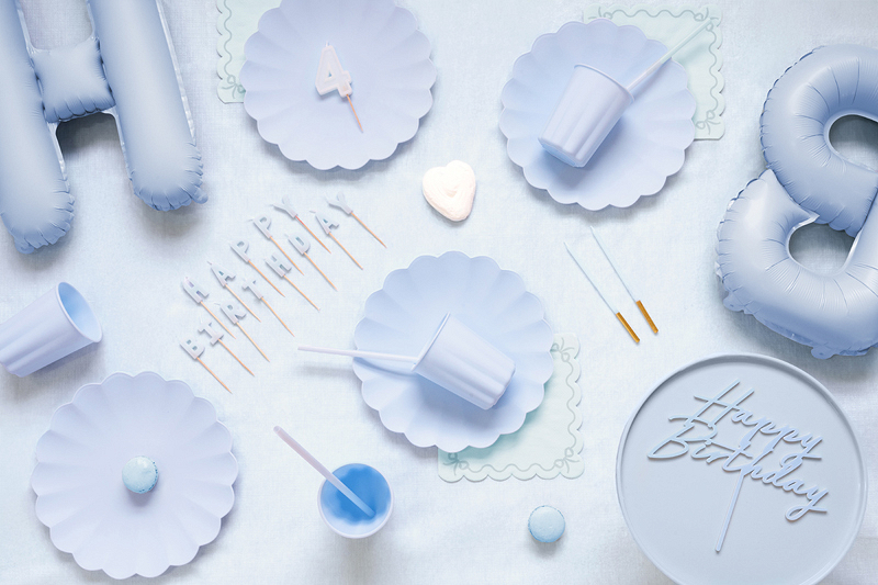 Adauga un mesaj vesel tortului tau cu aceste lumanari cu litere "Happy Birthday" intr-o nuanta delicata de albastru deschis!