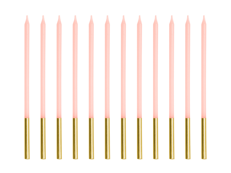 Lumanari Roz (12 buc), 14 cm - PartyDeco