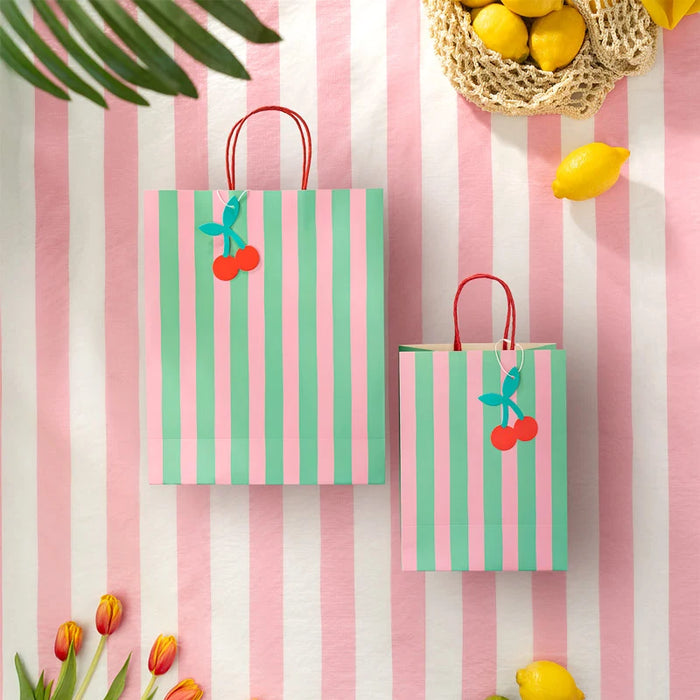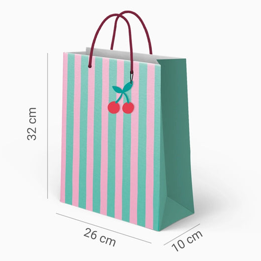 Pungă cadou rezistentă și elegantă, cu un design modern în dungi roz și turcoaz. Dimensiunea de 26 × 10 × 32 cm o face ideală pentru cadouri medii, jucării, accesorii sau produse decorative. Perfectă pentru aniversări, petreceri și orice ocazie specială.