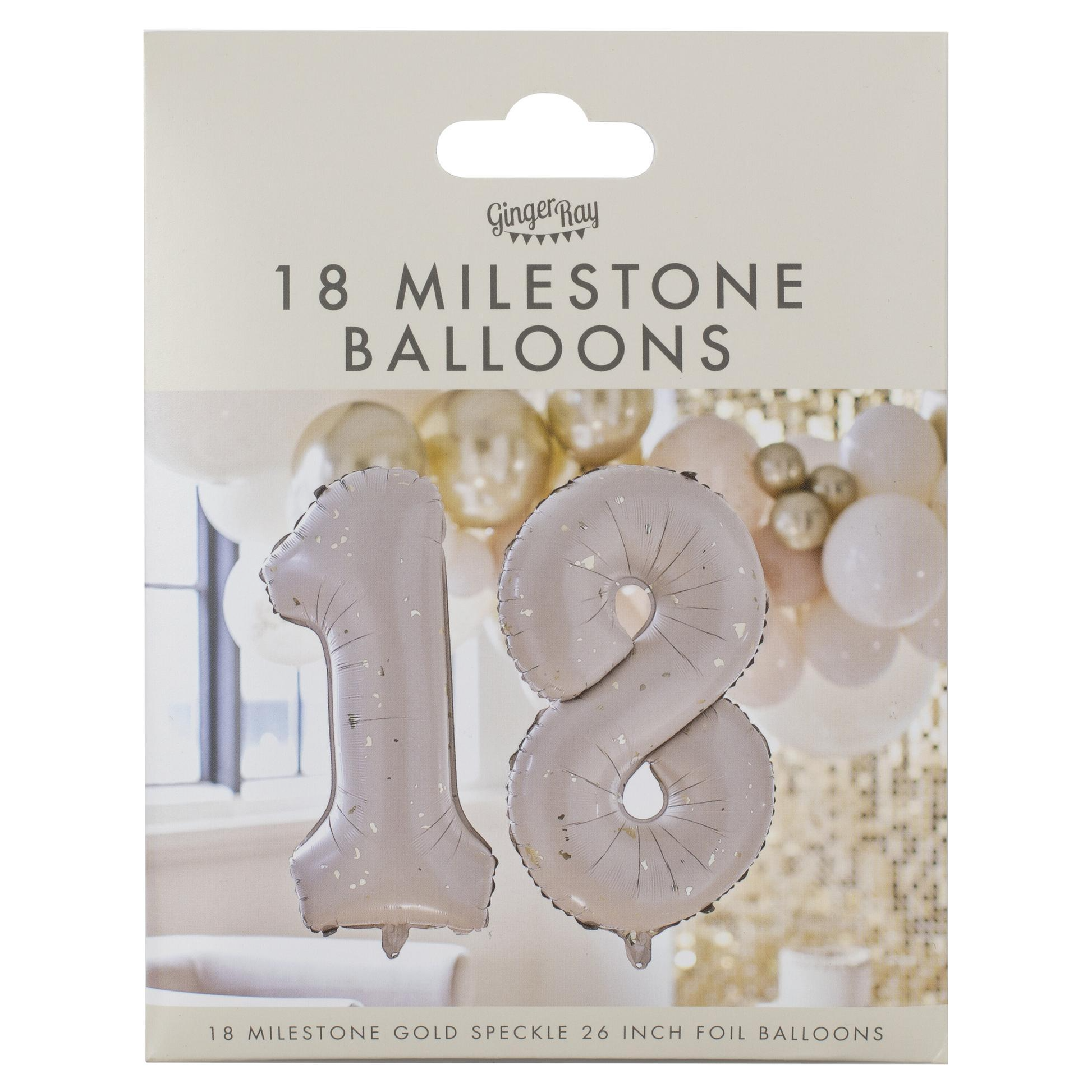 Set baloane Majorat, Ginger Ray, cifre 18, Bej si Auriu, 66cm