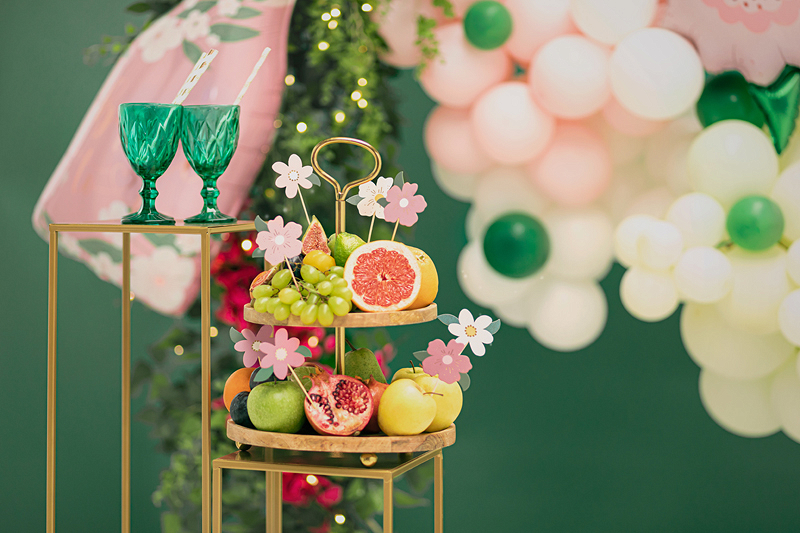 Toppers pentru Tort cu Flori – Roz & Alb, Set de 8