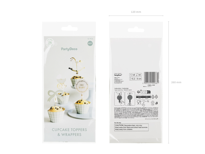 Set pentru briose, 6 toppere + 6 forme 'Oh Baby' (6 buc) carouri verzi
