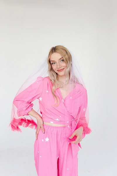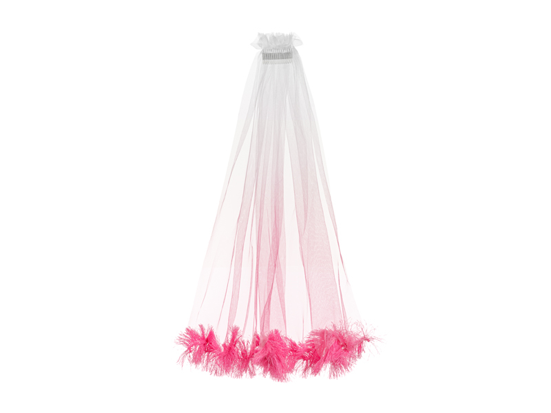 Voal cu franjuri in nuanta roz ombre, lungime aprox. 69 cm.